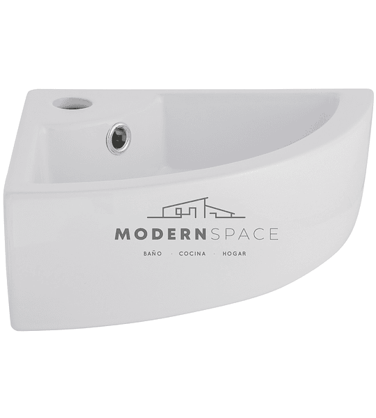 LAVAMANOS ESQUINERO DE LOZA. PUEDE UTILIZARSE COLGANTE O SOBRE UN MUEBLE MEDIDAS: ANCHO: 45 FONDO ESQUINAS : 32 INCLUYE: - LAVAMANOS - LLAVE CON FL...