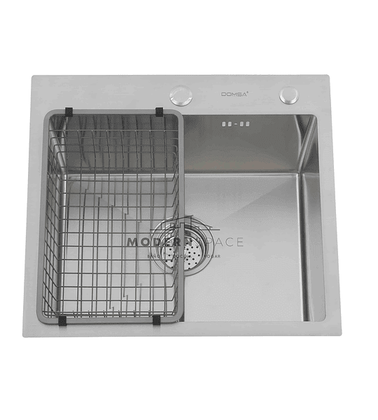 Pozo Lavaplatos simple sobre cubierta color negro de Acero Inoxidable con rejilla y dispensador * Material: Acero Inoxidable * Medidas Exteriores: ...