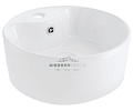 Moderno Lavamanos sobre poner apto para todo tipo de BaseMaterial: LozaForma: RedondaMedidas: 35 cm de diámetroalto: 12 cmColor: BlancoOrificio para grifería: 1