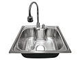 Pozo Lavaplatos simple sobre cubierta de Acero Inoxidable con rejilla y grifería