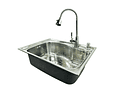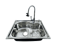 Pozo Lavaplatos simple sobre cubierta, estilo riñón, de Acero Inoxidable con rejilla y grifería