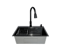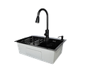 -incluye desagüe y sifón estilo cuello ganso flexible, rejilla, dispensador de jabon y monomando para lavaplatos extraible con sus flexibles