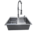 -incluye: Lavaplatos, rejilla, dispensador de jabon, desague y llave monomando INDUSTRIAL con sus flexibles.