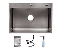 -incluye desagüe y sifón estilo cuello ganso flexible, rejilla, dispensador de jabon.