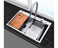 Lavaplatos 75x45 Cm Plateado, Con Accesorio Y Cascada / Ms