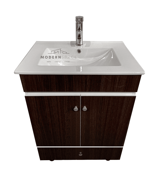 Vanitorio MDF Chocolate con cubierta de loza y grifería.